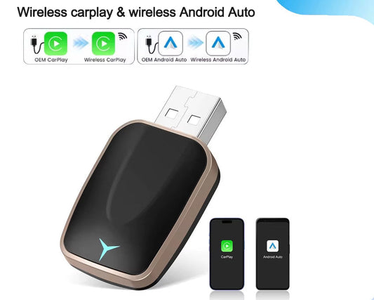 Our wireless CarPlay adapters are compatible with all iPhone models (iPhone 5s and newer) and work seamlessly with any vehicle that has a factory or aftermarket CarPlay system. They support both wired and wireless CarPlay vehicles. For Android users, we offer compatible wireless Android Auto adapters. Simply plug the adapter into your car's USB port, and it will automatically connect to your phone via Bluetooth and WiFi.